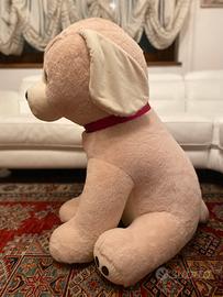 Vendo grande e morbido peluche a forma di cane. Ottime condizioni, come nuovo. Dimensioni: Altezza: 85 cm Larghezza: 70 cm Materiale Esterno: Pelo morbido di colore beige/crema. Materiale Interno: Struttura interna in polistirolo per mantenere la forma. Dettaglio: Dotato di collare decorativo di colore rosa.