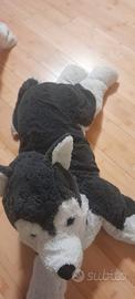Bellissimo e tenero peluche a forma di cane husky, Colore bianco e grigio, cm 58.