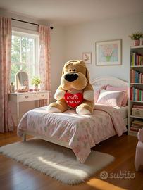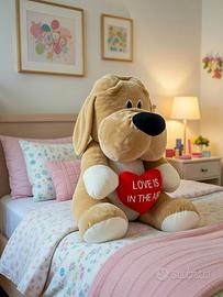 Dolcissimo peluche a forma di cane color miele con cuore rosso "LOVE IS IN THE AIR" - il regalo perfetto per San Valentino o per far sorridere chi ami!