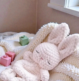 Dolcissimo coniglietto amigurumi realizzato interamente a mano all’uncinetto, ideale come regalo nascita, baby shower o come tenero peluche per la cameretta.