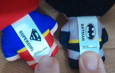 Peluche dei personaggi della DC comics di Batman e Supergirl.