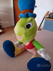 peluche originale Disney grillo parlante di Pinocchio, usato in buone condizioni, cima del capello leggermente scolorito, manca ombrello e giacchetta