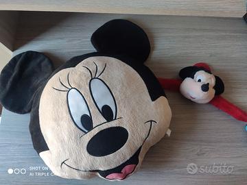 Cuscino Peluche Disney largo 40 cm circa di Minnie, appendiabiti con personaggio Topolino e macchinina Disney Clementoni a molla. Usato ma ben tenuto.