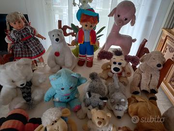 Vari peluches di varie dimensioni e tipologia, bambola e bambolotto. Cedo a offerta libera dell'acquirente,anche simbolica.