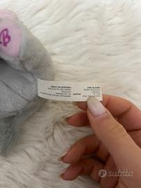 Piccolo peluche elefantino Mattel (©2008) in morbido tessuto grigio con dettagli rosa. Occhi ricamati grandi, zampetta con lettera “B” ricamata. Materiale: 100% fibre di poliestere, superficie lavabile. Condizioni ottime, nessun difetto visibile. Dimensioni: circa 10–12 cm (palm size). Perfetto per collezionisti Mattel, amanti dei mini plush o come idea regalo tenera e decorativa. Spedizione veloce e imballo accurato. #peluche #mattel #mattel2008 #elefantino #minipeluche #plush #collezionismo #toys #cuteplush #babyroomdecor #regalo #pupazzo #softtoy #vinteditalia