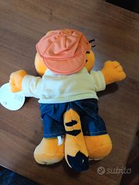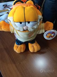 Peluche da collezione di Garfield prodotto da Aurora World, alto circa 18 cm. Il peluche raffigura Garfield che indossa una maglietta gialla e pantaloni di jeans.