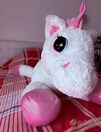 Peluche gigante a forma di unicorno, misura grande, 80 cm, colore: Bianco/Rosa/ Occhi azzurri.