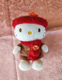 Peluche di hello Kitty con cappellino, giacca, sciarpa e ricami floreali. Misure: Larghezza 13 cm Altezza 20 cm Profondità 9 cm