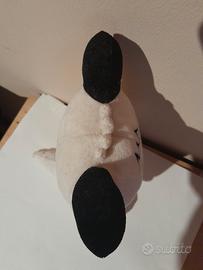 Il peluche nell'immagine raffigura l'iconico caneSpank, protagonista del celebre anime e manga degli anni '80Hello! Spank. dimensioni 15x20cm Dettagli del Prodotto Caratteristiche:Il peluche riproduce fedelmente Spank con la sua caratteristica espressione gioiosa, il grande sorriso rosa, i baffi stilizzati e le orecchie nere. È realizzato in morbido poliestere
