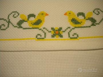 A chi lo acquista regalo una busta porta merenda ricamata a mano, anch'essa nuova e fatta da una signora che lavorava per "Mani di fata" (in foto).