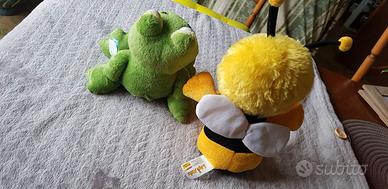 Peluche 100% poliestere. Kit da 2 pezzi composto da: - RANA altezza 17 cm. - APE MAIA altezza 25 cm.