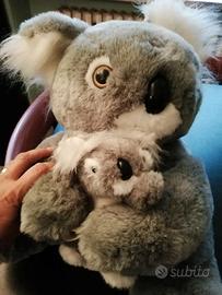 Bellissimo peluche koala gigante con il suo piccolino, tenuto tra le zampe con il velcro.