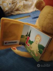 Peluche della compagnia Malaysia airline, leone con libro racconto sul dorso Tutto come in foto