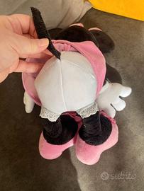 Peluche del personaggio Minnie di Disney, morbidissimo tessuto, particolari ricamati, abito con dettagli scintillanti, vestito e fiocco a pois, fiocchetti sulle scarpe, dimensione media, altezza circa 40 cm. Condizioni perfette.
