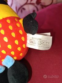 Peluche di Bob in versione Fragola, parte dell'esclusiva collezione "Minions Fruit" rilasciata da Illumination per il lancio di Cattivissimo Me 4. Il peluche è curato nei minimi dettagli, con il corpo giallo vibrante, il costume rosso a pois e le iconiche foglioline verdi sulla testa. Un pezzo immancabile per ogni fan dei Minions! Caratteristiche del prodotto: Condizioni: Ottime, pari al nuovo. Dettagli: Etichetta in stoffa originale presente e perfettamente leggibile (come da foto). Dimensioni: Altezza circa 20-25 cm. Qualità: Morbidissimo al tatto e con cuciture resistenti