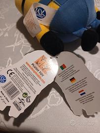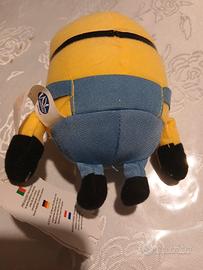 peluche di Minion con il suo carattetistico vestito azzurro e giallo. materiale poliestere lavabile solo in superficie nuovo con cartellino