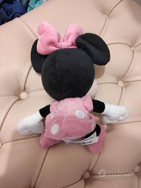 Iconico personaggio Disney con finitura morbida e dettagli ricamati, vestito e fiocco a pois.