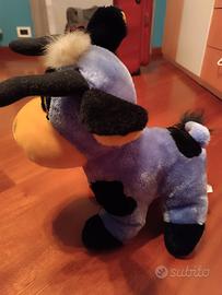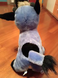 Peluche a forma di mucca viola a macche nere con muso arancione. Alto circa 30cm. Marca Globo