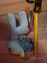 Rainbow Dash (celeste): È un Pegaso noto per la sua criniera e coda arcobaleno e il simbolo (cutie mark) a forma di nuvola con fulmine arcobaleno.