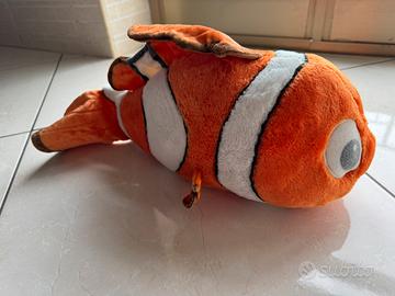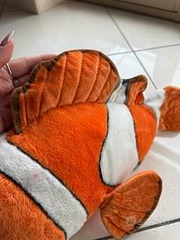 Peluche di Nemo del Disney Personaggio fedele al cartone con una pinna più grande dell’altra. Lunghezza: 44cm circa contando la coda. Unico difetto: piccola macchiolina rosastra cerchiata di blu in foto.