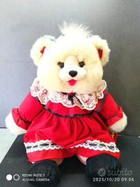 Peluche di alta qualità, vestito in rasatello, cm. 60. Rimanenza di magazzino. Bellissimo. La foto non rende la qualità.