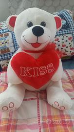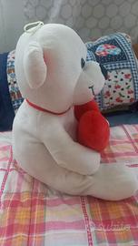Peluche orsetto con cuore l'estremità del nastro rosso è rovinata, come si vede in foto