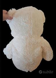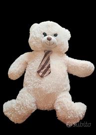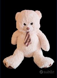 Morbido peluche a forma di orso bianco, alto 70 cm. Indossa una simpatica cravatta a pois.