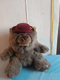Peluche orso vintage originale firmato Patricia Townsend Design, con cappello, occhiali e meccanismo interno per batterie (spazio presente).