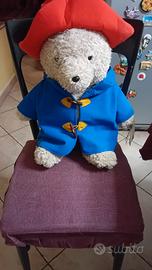 Peluche di Paddington, originale e di grandi dimensioni. - Altezza: 60 cm - Indossa il classico cappotto blu e il cappello rosso.