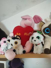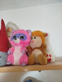 vendo peluche di diverse dimensioni e taglia ovviamente per più informazioni e foto chiedete in privato vendo stich che respira però ha bisogno di essere aggiustato all'interno e cambiare le batterie mai provato se funziona davvero quindi non saprei. set di peluche occhi grandi, tra la quale un gatto un procione (che sono medi) un gatto tigrato rosa e bianco, un'altro gatto grigio ,un cane in versione natalizia, una mucca tutti piccoli. poi vendo Pimpi grande con Scritto be mine col cuore. i prezzi variano per quanto riguarda dimensione e marca comunque non superano i 10 euro
