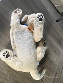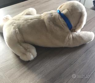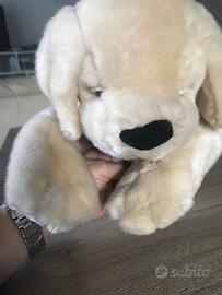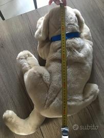 Morbidissimo peluche porta pigiama cane mascotte Scottex, sulla pancia ha una tasca che si chiude con cerniera per riporre il pigiama. Lunghezza circa 40 cm.