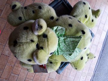 Vendo due peluche rane..di qualche anno fa ma ancora perfette!...proprio volendo solo il fiocco da cambiare che leggermente sbiadito...una grande da ben 55 cm...la piccola 40...belle!...fatte bene soprattutto morbide!....ancora con etichetta originale!.....vintage!...50 euro..no tutto subito...