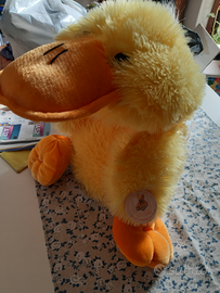 Peluche , un papero sdraiato , adatto per la stanzetta dei bambini da mettere sul lettino , non usato , ancora nel celofan.