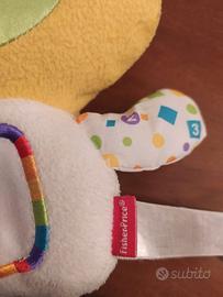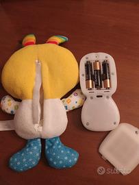 peluche sonoro si pigia sulla pancia e suonano diverse melodie molto allegre che divertono i più piccoli. ha qualche macchiolina sul viso come da foto. 2 intensità di volume. funzionante, pile non incluse