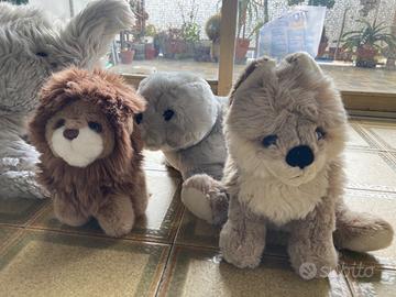 5 peluche , due di marca, grande elefante, leone, lupo, foca, riccio vendo buone condizioni