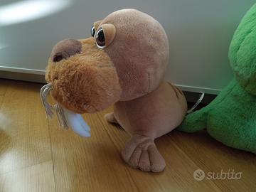 Peluche animali: coccodrillo, tricheco e pinguino.