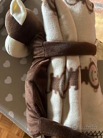 Vendo scimmietta di peluche con copertina per neonato in pile, entrambi nuovi.