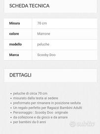 Peluche di Scooby-Doo perfetto, misura cm 70 circa, originale 50,00 euro Preferibile scambio a mano, eventuale spedizione a carico del destinatario Paolo 3479420873 dopo ore 17,00