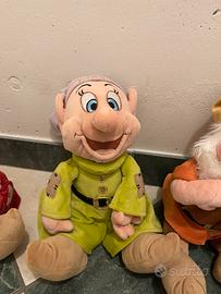 Vendo peluche originali Disney dei Sette Nani: Brontolo, Cucciolo, Dotto, Eolo. Vendo anche singolarmente m, usati pochissimo come nuovi.