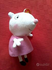Lotto intero(peluche Suzy amica di Peppa Pig+bambolina Peppa Pig+set trasferelli Peppa Pig+sticker game Peppa Pig+gomma Peppa Pig)SCONTATO a 15 euro oppure singolarmente:
