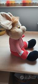 Vendo peluche originale Topo Gigio, personaggio iconico degli anni ‘60 e amato da grandi e piccoli. Il pupazzo è in buone condizioni generali, con abbigliamento a righe rosse e capelli sintetici.