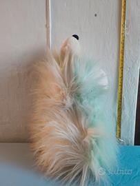 Peluche a forma di topolino decorativo vintage, colori pastello verde acqua e bianco.