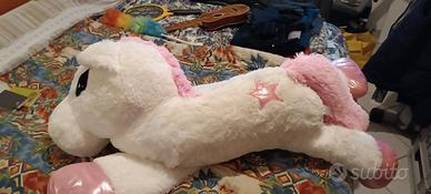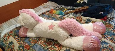 peluche unicorno lungo dalle zampe 120 cm corpo 60cm e altezza corpo- testa 60 cm bianco in ottime condizioni