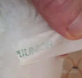 Splendido peluche vintage di colore bianco latte, marca Junior. Il peluche è caratterizzato da un pelo estremamente soffice e folto, molto piacevole al tatto. Presenta grandi orecchie arrotondate e una simpatica coda lunga con pompon finale. Condizioni: Ottime, come da foto. Pelo pulito e ben conservato. Dettagli: Naso nero a contrasto, posizione seduta. Marca: Junior (etichetta originale presente). Dimensioni: Circa 25 cm d'altezza. Perfetto per collezionisti di vintage o come idea regalo tenera e intramontabile.