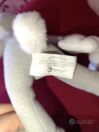 Peluche originale di Bugs Bunny della linea Looney Tunes, prodotto da Equity Toys su licenza ufficiale Warner Bros. nell'anno 1994. Caratteristiche del prodotto: Marca: Equity Toys™ / Warner Bros. Anno di produzione: 1994 (riportato chiaramente sull'etichetta). Stato di conservazione: Usato in ottime condizioni. Il peluche è pulito, non presenta macchie, strappi o segni di usura evidenti sulla pelliccia. Dettagli: Presenta l'etichetta originale in tessuto (tush tag) perfettamente leggibile. Non è presente l'etichetta cartacea all'orecchio. Materiali: Morbida pelliccia sintetica grigia e bianca con l'iconica coda soffice