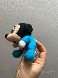 Simpatico e raro peluche vintage anni '80/'90, chiaramente ispirato al personaggio di Minnie ma con un design unico e originale (stile fiera/Luna Park). Caratterizzato da grandi occhi espressivi in plastica, un vivace corpo azzurro e un grande papillon rosa in stoffa.