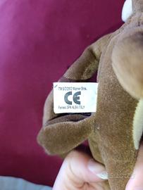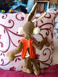 Peluche di Wile E. Coyote (Willy il Coyote), edizione speciale "Paracadutista" prodotta per Ferrero nel 2002 su licenza ufficiale Warner Bros. Dettagli dell'oggetto: Personaggio: Wile E. Coyote (Looney Tunes). Condizioni: Molto buone, il pelo è pulito e i colori sono vivaci. Accessori inclusi: Viene fornito con il suo iconico gilet arancione imbottito originale. Etichetta: Presente l'etichetta in stoffa originale che ne attesta l'autenticità e l'anno di produzione. Nota per collezionisti: Il paracadute azzurro originale è mancante, ma il gilet è presente e in ottime condizioni.