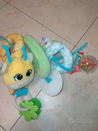 peluches carrozzina o passeggino con morbidi laccetti, pallina sonora e oggetti in plastica morbida chicco ( mai usato nemmeno questo)