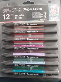 Pennarelli promarker winson & newton nella.loro confezione originale totale pennarelli 25,sei pennarelli mid toner,sei pennarelli rich tones,12+1 manga chibi