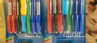 penne cancellabili di vario colore, mai usate, solo una confezione è leggermente aperta come da foto, comprate ma sono passati alle non caccellabili